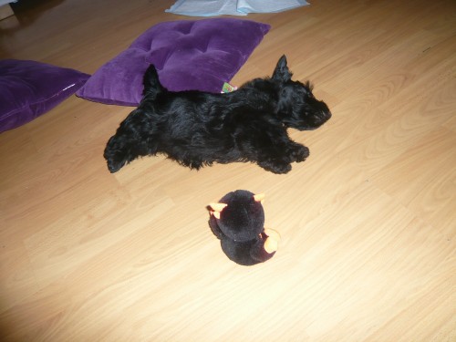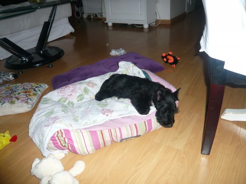 La petite High Hopes va bien, elle me mort les pieds et mange mes pantoufles. Elle a l’air heureuse. Pour le prénom, je pense que ce sera Eva ou Héva ou bien Ava ou Hava pour respecter le H mais on a pensé aussi à Havana. Alors c’est un peu difficile. Quelques fois je l’appelle High Hopes aussi pour qu’elle se rappelle de vous et de ses frères et soeurs.